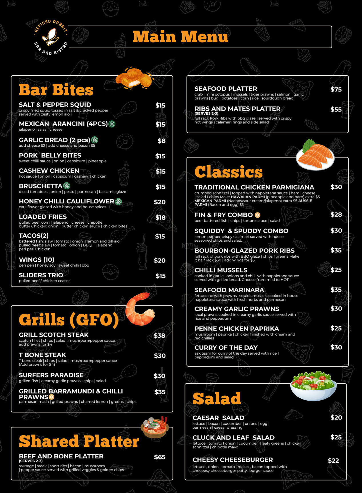 Menu items and prices subject to change. Please inform staff of any allergies.